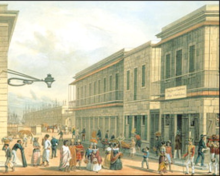 Alte Bilder und Stiche von Port Louis und eine Darstellung des Lebens am Hafen;