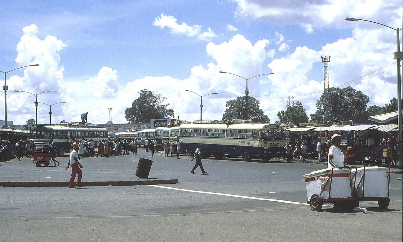 Zweimal habe ich bisher die alte Ruinenstadt “Great Zimbabwe“ besucht. Das erstemal 1996, elf Jahre später noch ein weiteres mal. Leider mußte ich bei der ersten Reise per Bus von der Hauptstadt Harare aus anreisen, weil die Bahnlinie von Gweru nach Masvingo damals nicht bedient wurde. Aber auch Busfahrten haben in Afrika ihren Reiz. Allein schon die Busbahnhöfe sind einen Besuch wert. Hier geht es auf den ersten Blick zwar drunter und drüber zu, der zweite Blick läßt aber schon eine gewisse Systematik erkennen, die einen dann auch den richtigen Bus finden läßt. Hat man diesen einmal gesichtet, einen Fahrschein erworben und dann auch noch einen Fensterplatz im betagten Vehikel ergattert, kann eigentlich nichts mehr schiefgehen. Vom Sitz fällt man jedenfalls nicht, weil die enge 3+2-Bestuhlung kaum einen Millimeter Freiheit nach rechts oder links zuläßt.