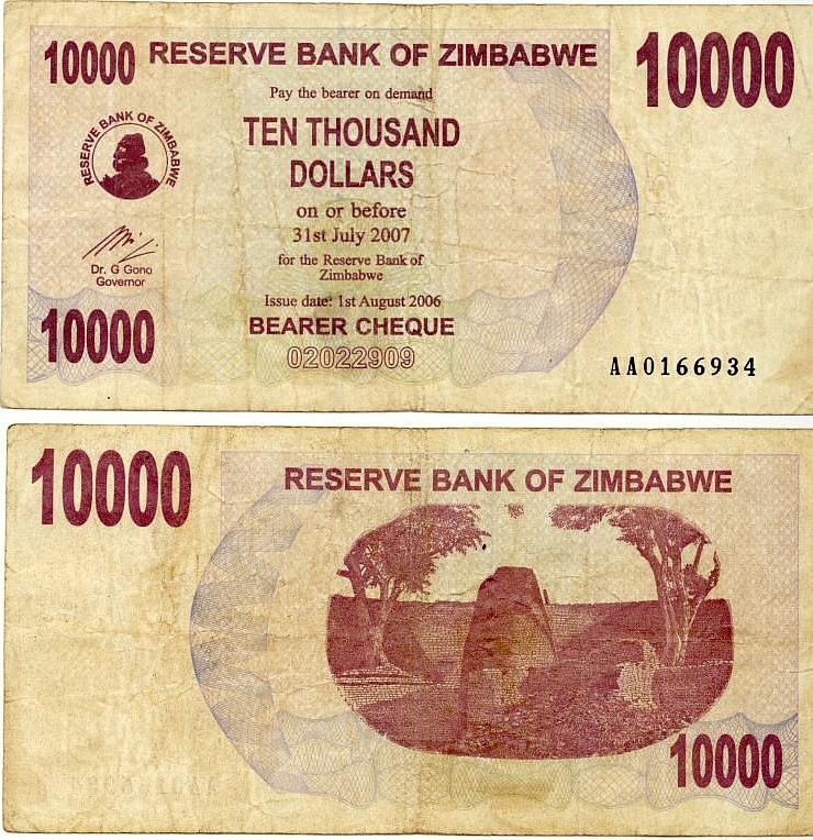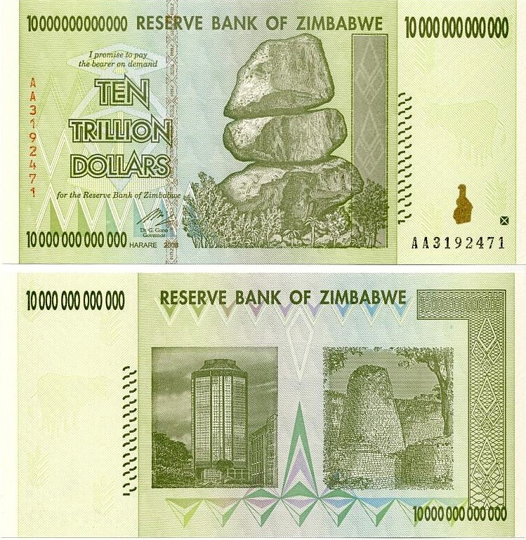 http://www.zimbio.com/Zimbabwe+Issues/a ... +sale+eBayMittlerweile ist auch diese Episode Vergangenheit. Im Februar 2009 wurden wiederum 12 Nullen gestrichen und im April 2009 der Zim-$ endlich beerdigt. Seitdem gelten im Land nur noch US-$, britisches £, südafrikanischer Rand und botswanischer Pula.