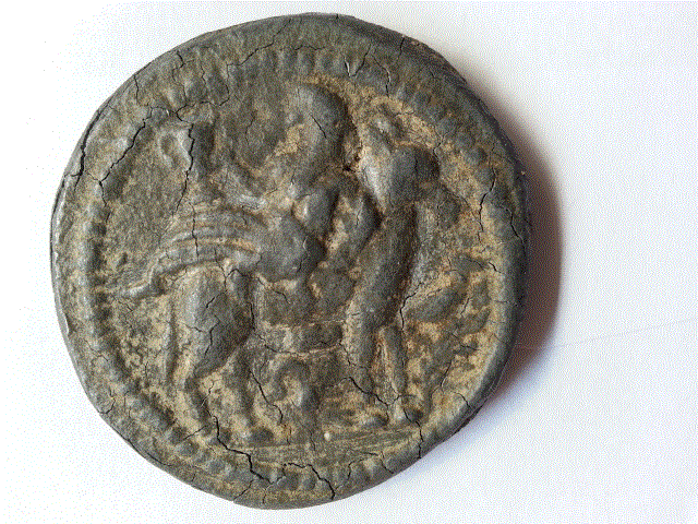 Sie ist ca. 16 g schwer und hat einen Durchmesser von ca. 34 mm.Zur Herkunft kann ich später noch etwas sagen, möchte aber eventuell nicht die Meinungen beeinflussen.