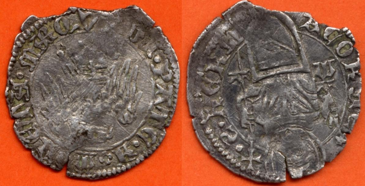 die Umschrift auf der Bildseite mit dem Bischof ist der Schlüssel: Dort lese ich S. HERM (Schild) ACOR xxx. Ein Bild des heiligen HERMACHORAS gibt es aber ausschließlich auf Münzen des Patriarchats Aquilea!