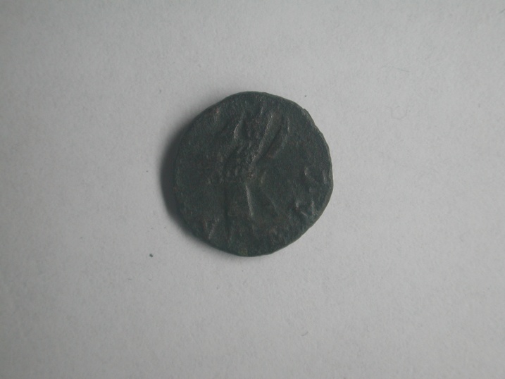 Vorderseite: Kaiser Tetricus mit Strahlenkrone(?) nach rechts / Rückseite stehende Figur (z.B. Hilaritas).