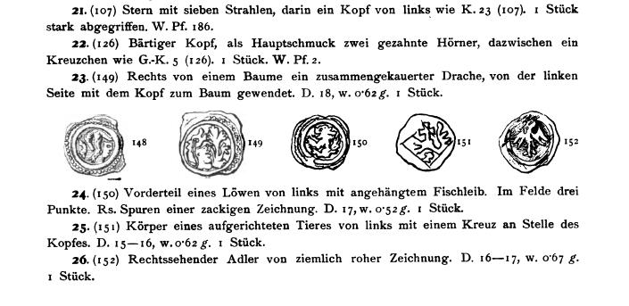 Ich habe mir einmal die Abbildung bei Papa Luschin (Steirische Münzfunde, Friesacher Pfennig) angeschaut und da hat der Löwe (?) mit Kreuzkopf schon einen Sägeschwanz, wie dein Pfennig, lieber Walker. Die Diskussion kann fortgesetzt werden. Vielleicht gibt es von diesem Stück, das im Fund Hohenmautern ja nur in einem Exemplar aufscheint, doch mehrere Stempelbeispiele oder auch Beischläge. Hier eine Scan aus der Seite von den "Steirischen Münzfunden" (siehe Abb. 151):