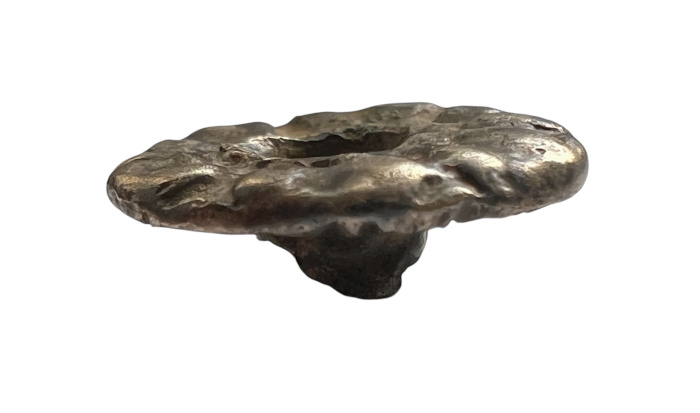Das "Ding" ist aus Silber, hat einen Durchmesser von 12 mm und ein Gewicht von 1,2 Gramm. Wäre nicht die komische Rückseite, hätte mein Bauchgefühl an einen durchschlagenen Kelten gedacht.