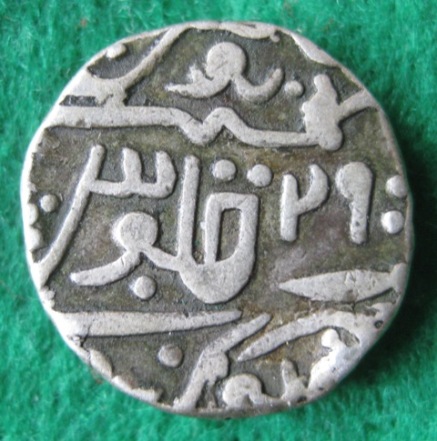 Indische Fürstentümer der Nachmoghulzeit sind nicht mein Sammelgebiet, aber manchmal finde ich ein Stück schön; habe allerdings keine Literatur zum Thema. Von dieser Rupie weiß ich, daß Sawant Singh aus Partabgarh sie prägen ließ im Jahr 1199 AH, im 29. Regierungsjahr von Alam I. (der war da aber schon tot). Sie wiegt 10,81 gr. Außerdem hat sie verschiedene Randpunzen, von denen ich nicht weiß, ob die da hingehören oder nicht. Hat jemand von Euch auch eine Katalognummer parat?