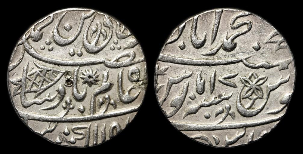 Anm. Das 17. Regierungsjahr (1776) kennzeichnet die Übernahme der Münze durch die EIC und wird bei diesem Typ durchgängig geprägt. Das tatsächliche Regierungsjahr des Moghulherrschers wird in den Ausgaben der Folgejahre zusätzlich angegeben.Der