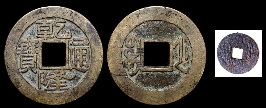 Es ist zwar nur ein Ratespiel, aber ein Versuch kann ja nicht schaden. Das Alter wird kaum feststellbar sein, weil beide Bilder dieselbe Seite zeigen, nämlich die Angabe der Prägestätte (Provinz Chekiang, falls ich richtig rate) ... und der Kaiser (und damit die Regierungszeit) sollte auf der anderen Seite gewesen sein. Das Stück, das ich zum Vergleich herangezogen habe, ist sehr häufig, aber hier geht es ja auch nicht um Seltenheit ... ;)