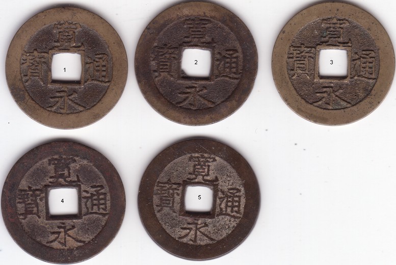 Davon fehlen mir noch 8 :shock: von 11 Unterarten, die habe ich leider auch noch nie zu mehreren kaufen können. Die Stücke sind scheinbar seltener zu finden als die Kanei Tsuho zu 4 Mon.