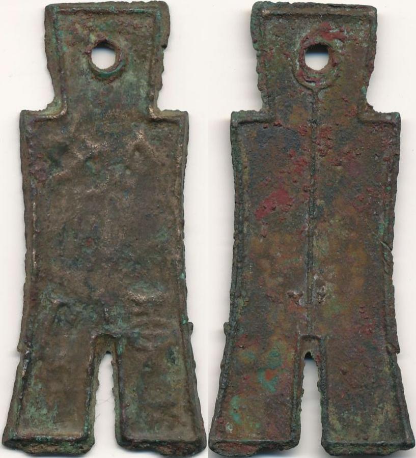 Ebenfalls etwa zu dieser Zeit tauchen die ersten Spaten und Messermünzen auf. Untergeordnet gab es noch Münzen in gebogener Form -> sogenannte Brückenmünzen, Münzen in Glockenform und Münzen in Fischform.