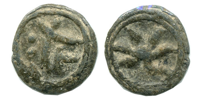 Bei Plomben ist das Material noch weicher und man sieht den "Stempeleindruck" im Material. Das Stück kommt wohl schon aus Südostasien. Es ahmt vermutlich Silbermünzen aus dem Reich Funan nach. Bleimünzen sind mit diesem Motiv und in dieser Größe weder im Mitchener noch bei Zeno zu finden. Vielleicht ist es ein ca 100. Jahre alter buddhistischer Token, vielleicht eine modernes Fake. Ich habe allerdigs auch ein Bild einer Gießmulde für solche Teile. Aber das sagt ja leider noch nichts über ihr Alter aus ...