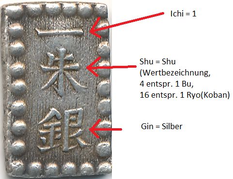 Ginza steht in diesem Fall zum einen für das Münzmetall, aber vor allem auch für den Herstellungsort - die staatliche Silbermünze.