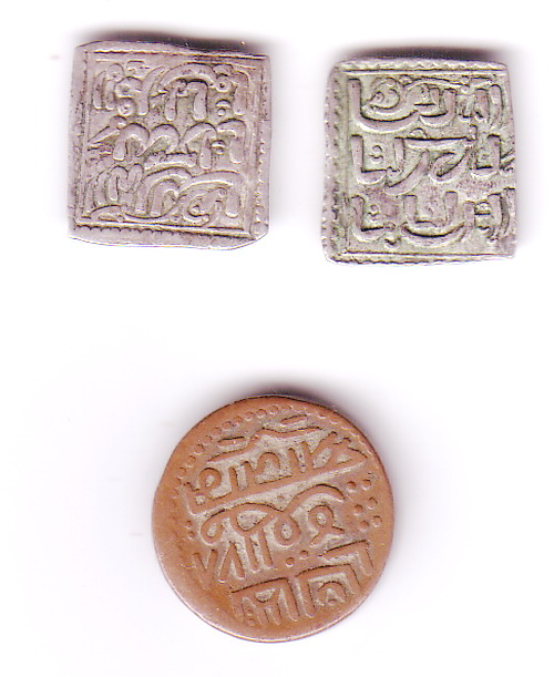Unten ist eine Münze aus Nawanagar in Indien mit dem Datum AH (9)78, die tatsächlich um AD 1850 geprägt wurde.