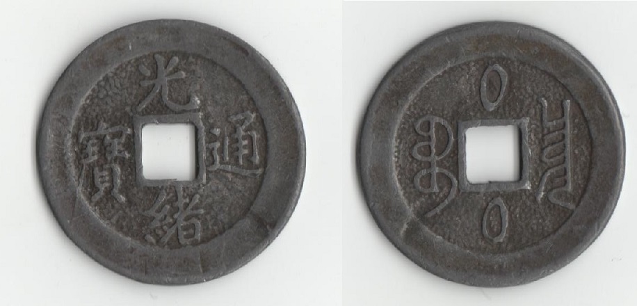 Mir ist mittlerweile durchaus bekannt, dass es sich um eine chinesische Käsch Münze aus der Zeit (1890-1908) vermutlich aus der Kwang-Tung Region handelt.