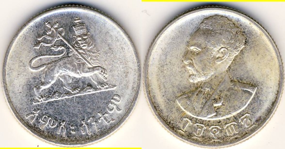 (And mention also, for fun, that the Ethiopian series of EE1936 was designed by Gilroy Roberts, who designed the obverse of the 1964 Kennedy half dollar.)