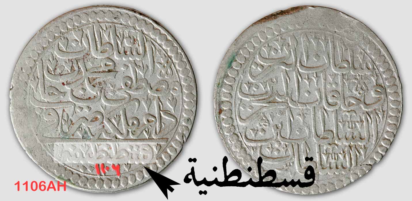 Ich habe mir erlaubt, die Prägesttte Konstantinopel und das Prägejahr 1106AH hervorzuheben, falls das jemanden interessiert.
