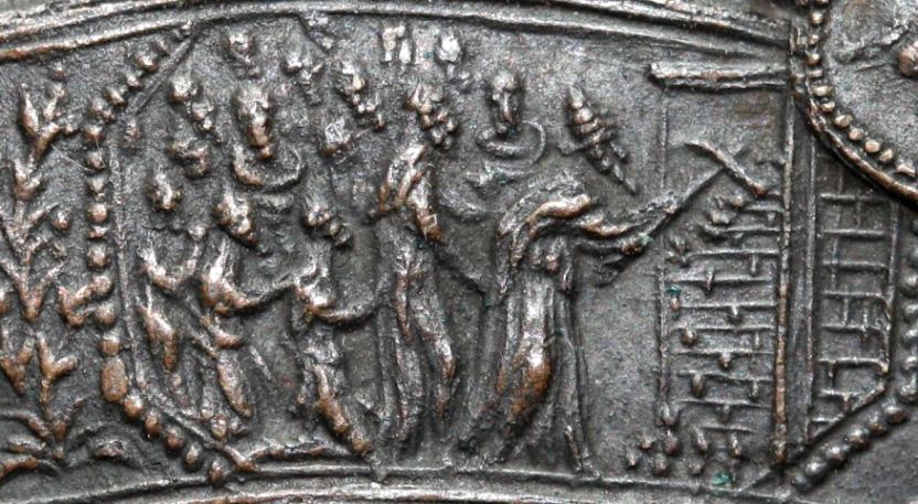Diese Medaille habe ich gewählt, weil sie das gleiche Prägejahr zeigt wie oben der kleine silberne Baiocco - jedoch ein anderes Pontifikatsjahr! Kalenderjahr und Pontifikatsjahr waren halt nicht deckungsgleich. Für Hardcore-Jahrgangssammler stellt diese Differenzierung vermutlich eine echte Herausforderung dar.
