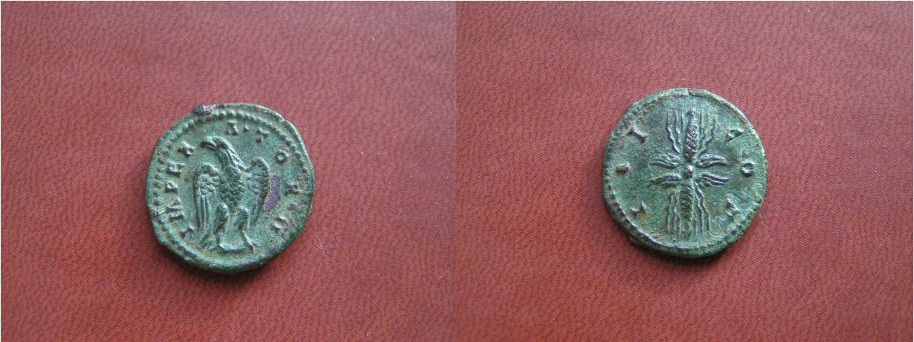 Av.: IMPERA . TOR . II (darüber Querstrich) Adler steht frontal, Kopf links