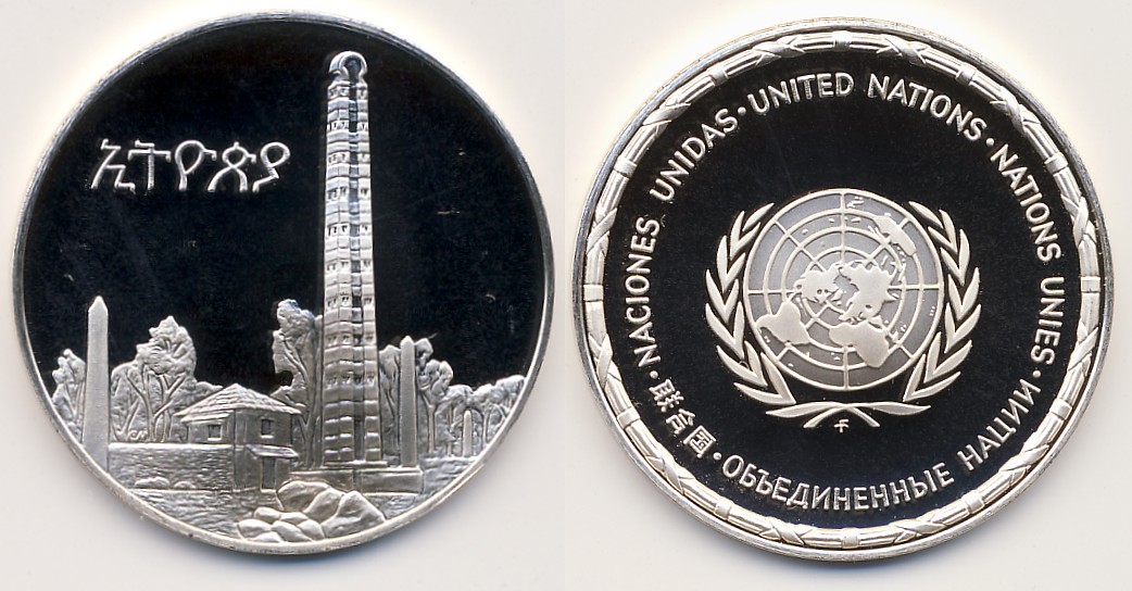 Bild 2: Dieses Stelenfeld auf einer UN-Medaille von 1979 (Silber, 11.27 g, 31.8 mm)