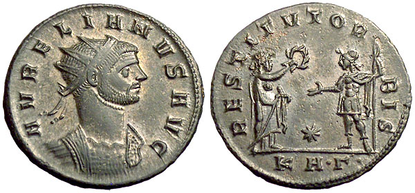 Av. gepanzerte Büste mit Strahlenkrone rechts IMP AVRELIANVS AVG
