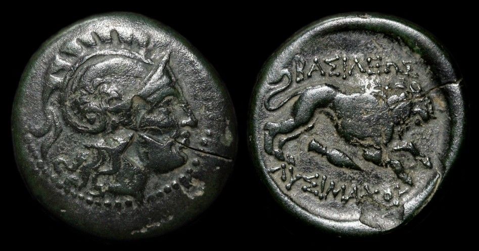Das kennt man natürlich von Reversen wie diesem hier (Extrembeispiel), aber auf Münzen des Lysimachos habe ich es auch noch nie gesehen.