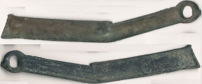 Das im Bild gezeigte Stück ist 86,39mm lang und wiegt 8,26g. Es wurde etwa auf 1122-222 vor Christus datiert. Mit hoher Wahrscheinlichkeit sind die Stücke in der Zeit der Chou Dynastie (1122-314 BC) hergestellt, liefen jedoch bis in die Ch'in Dynastie um.