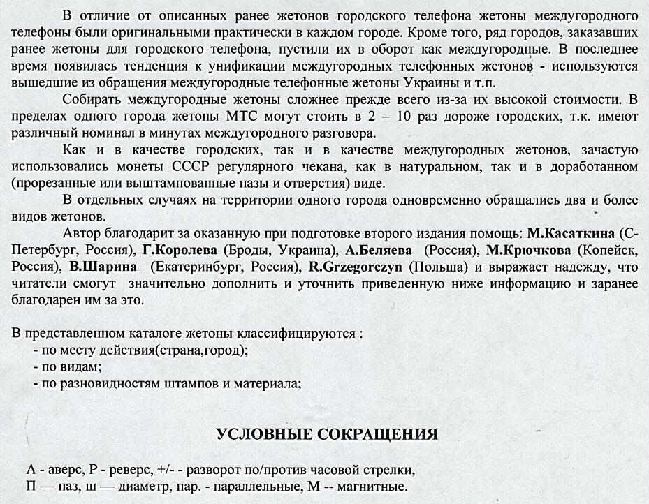 Die Entstehung des vorliegenden Katalogs ist dem Zufall zu verdanken, dass ich die Möglichkeit bekam, mich mit dem Ende der Moskauer UIT Gesellschaft zu beschäftigen. Die Herren Plugar und Groschenkow ermöglichten mir den Zugang zu den entsprechenden Unterlagen. Eine große Hilfe bei der Materialbeschaffung und bei Fragen zum Bezahlen der Münztelefondienste waren auch die Bediensteten des Samarkander (Usbekistan) und des Neukuibyschewer (Nowosibirsk) MTS (Mobile Tele Systems), die Herren A. Mosalow, A.Archipow, A.Maljawin, T. Rjasanzew, W. Tschedkasow, sowie die Bediensteten des Moskauer UTS W.Golowanow, P.Bascharow, O.Gordief und andere.