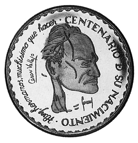 Rs: César A. Vallejo (1892 - 1938), Schriftsteller, nach einer Kreidezeichnung von Gaston Garreaud, Ausspruch „Hay, hermanos, muchisimo que hacer“ (es gibt, Brüder, sehr viel zu tun)