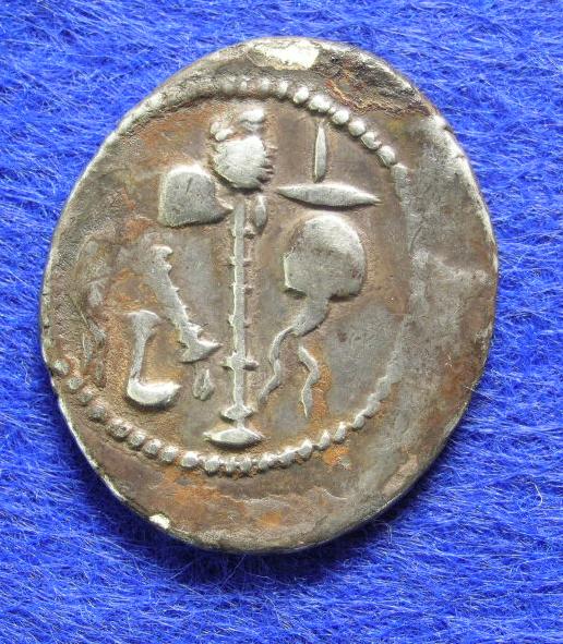Heute kann ich mal wieder einen Caesar in meiner Sammlung begrüßen. Okay, es ist der häufigste Typ - Elefant und Priestergeräte - , aber ein Elefantendenar ist immer was Schönes, und er ist auch schön ausgeprägt. Zumindest auf der Elefantenseite, die Geräte sind teils etwas schwach, was an dem großen Schrötling (max. fast 22 mm!) liegt.