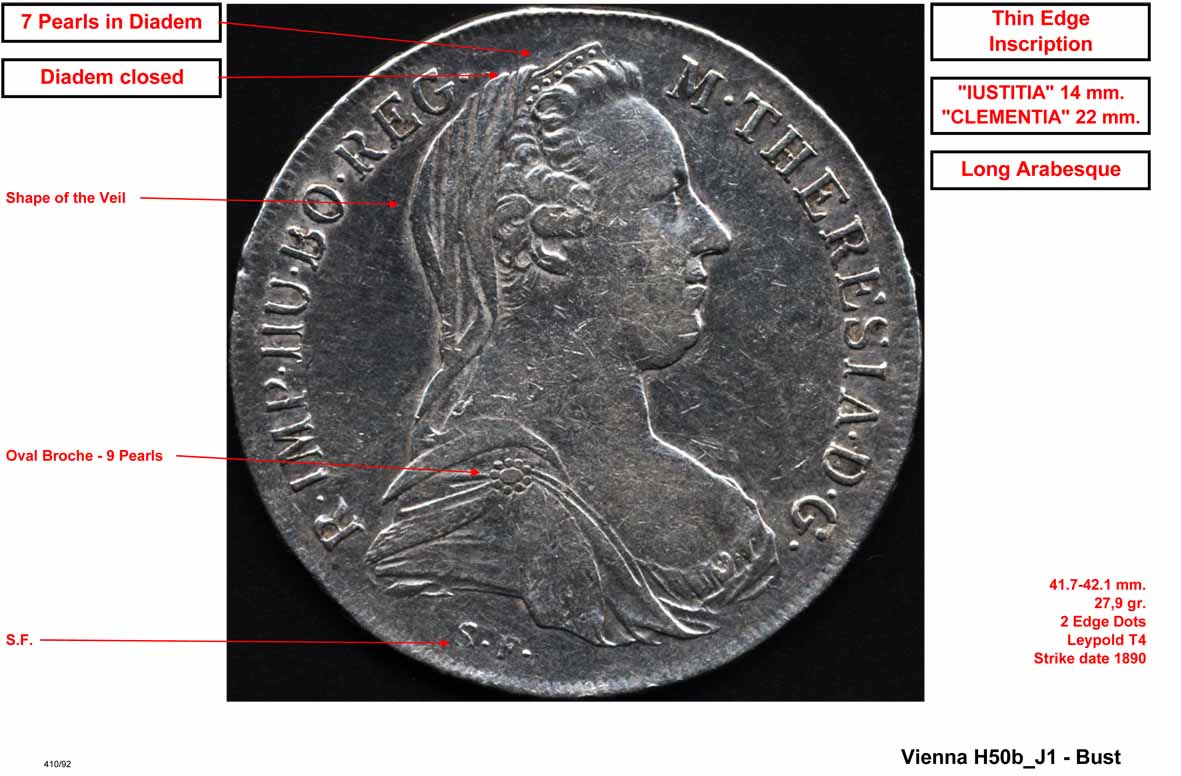 It has the typical word "iustitia" long only 14 mm. The central feather longer in the left wing of the Eagle and the typical closed diadem on the head of Maria Theresia.