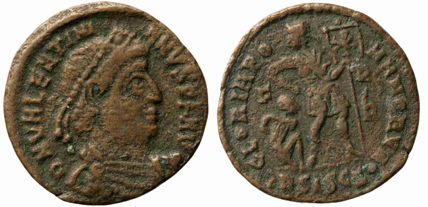 :D Ich gebe zu, es ist bei diesem Spätrömer nicht ganz einfach, weil die verschiedenen Symbole der Münzstätte Siscia immer wieder zu Verwirrung führen können.