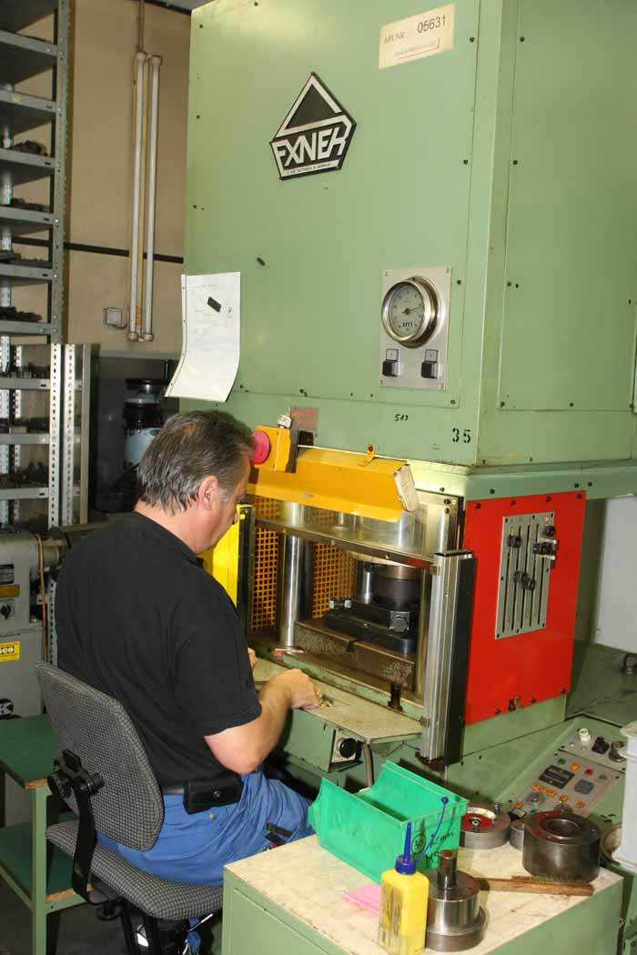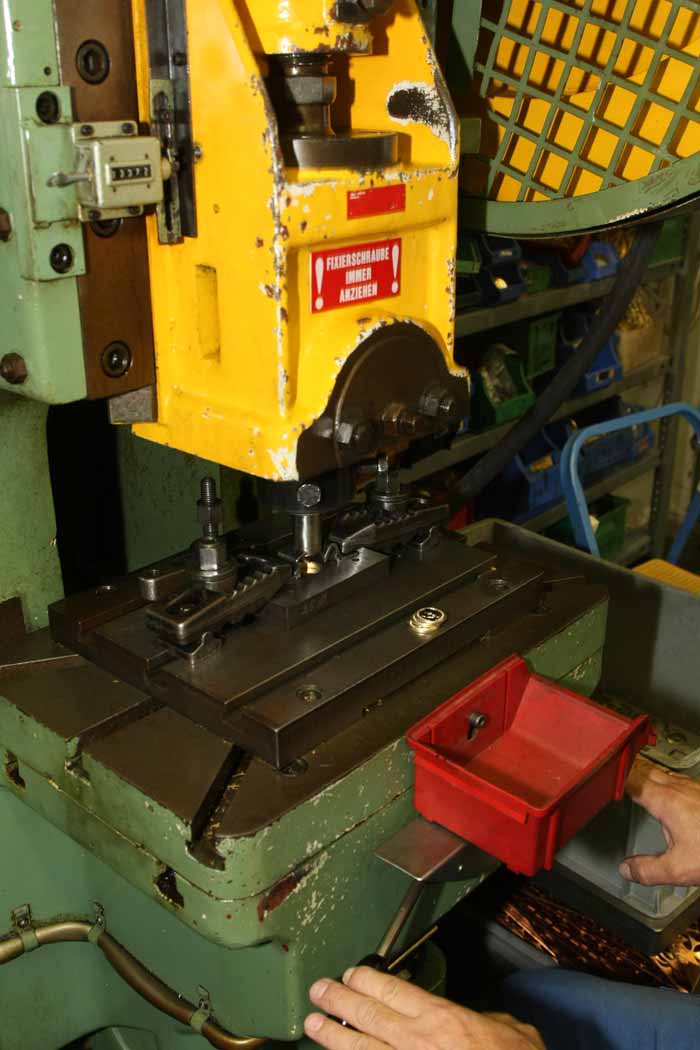 Prägung des Messing-Rohlings: