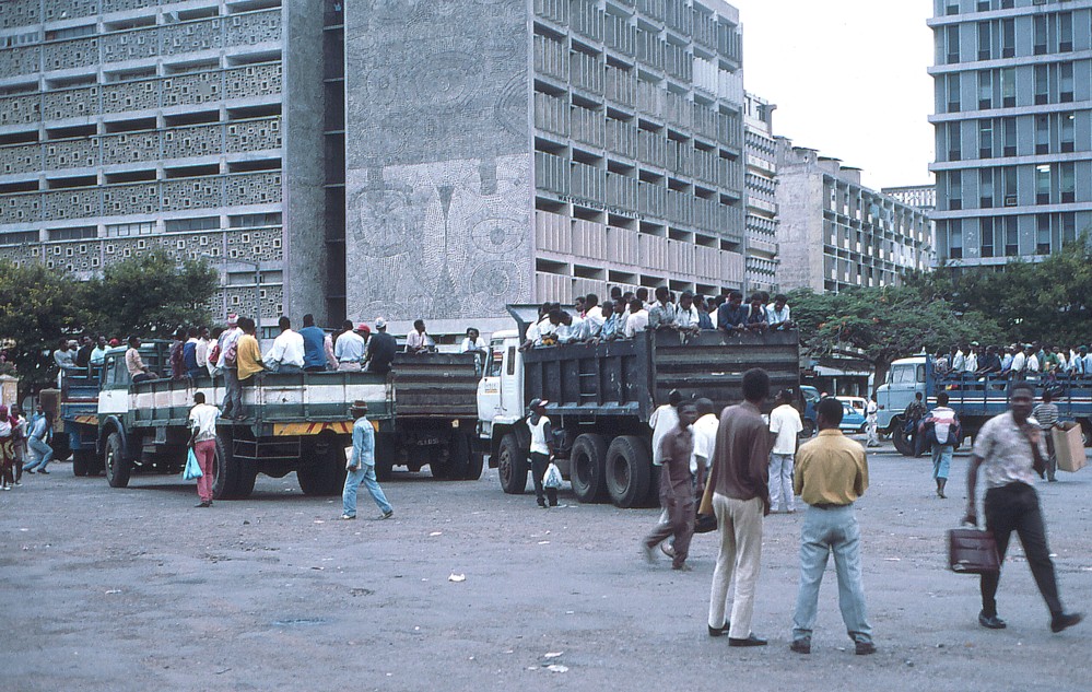 Aber trotzdem, ein guter Aufhänger für eine nette afrikanische Anekdote. Als ich 1995 für ein paar Tage in Beira war, faszinierte mich am Bahnhofsvorplatz nur eines: Da stand ein Wartburg 353 Kombi der lokalen Polizei fahruntauglich unter strengster Bewachung herum. Fahruntauglich? Dem Wagen fehlte ein Hinterrad, das geklaut worden war. Drei mosambikanische Polizisten – schwerbewaffnet mit MP – wachten seitdem Tag und Nacht über den Wartburg, damit nicht noch mehr Diebstähle passieren würden. Ich nehme es vorweg, all meine Versuche die Jungs zu überzeugen, ein Foto von dem Teil machen zu dürfen, schlugen fehl. Nicht mal deutsche Zigaretten, die sonst als Türöffner ungemein hilfreich sind, führten zum Ziel. Den Polizisten wäre das Foto offenbar zu peinlich gewesen.