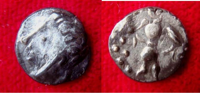 Diese Obole sind späte Imitationen der Goldprägung des Typs Athena- Alkis, am wahrscheinlichsten von Achtelstateren. Sie waren noch bis Ende der Neunziger extrem selten in der Standardliteratur zu finden ( 1 x Forrer, 1x Kolnikova).