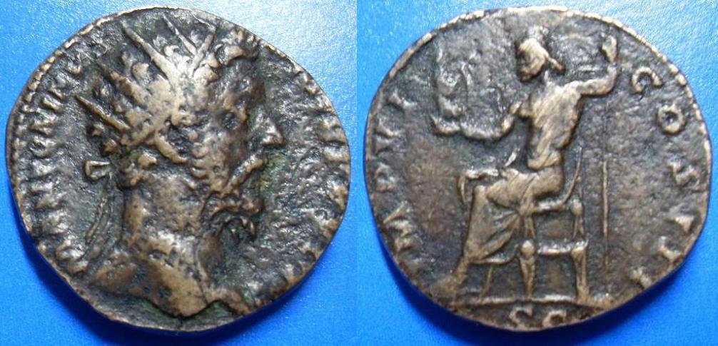 Hier ein Dupondius des Marcus Aurelius, schon mal als Fundmünze von Harald - auf Seite 10 dieses Threads - gezeigt: