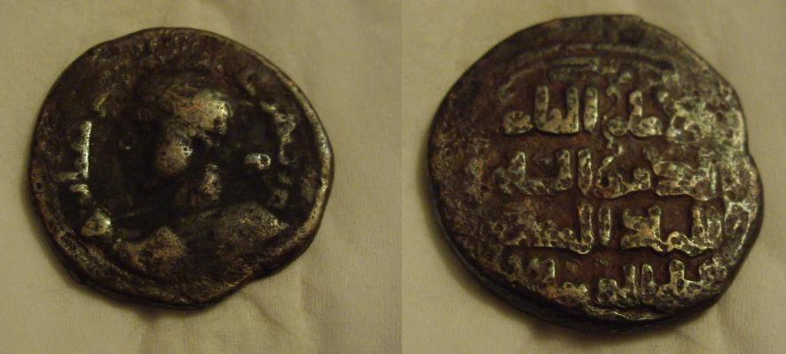 Bei den Zangiden bin ich auch ganz schwach besetzt. Beim folgenden Stück bin ich mir noch nicht einmal 100%ig sicher, ob es ein Zangide ist. Der Doppeladler taucht auch bei ähnlichen Stücken der Artukiden und bei kleineren Nominalen der Juchiden auf.