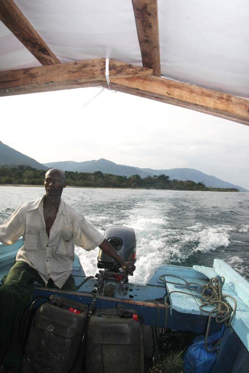 Nachdem wir unser Boot bestiegen hatten ging es also wieder Richtung Norden nach Kigoma. Nun standen uns 11 Stunden Bootsfahrt voraus. Wir fuhren zwischen einigen hundert und einigen tausend Metern vom Ufer entfernt, aber immer in Sichtweite. Ich war erstaunt wie weit raus sich die einheimischen Fischer mit Ihren winzigen Einbäumen auf den See wagten. Immerhin hatte das Gewässer teilweise Wellengang wir man es von der Nordsee her kennt. Nachdem auch der letzte Kanister Benzin vom Bug quer durchs Boot nach hinten gereicht wurde und die Sonne sich schon merklich dem Horizont näherte, erreichten wir den Strand unsere Unterkunft. Mit einem großen Grinsen auf dem Gesicht nahm unsere Bootsführer seine letzten 500$ in Empfang und verabschiedete sich.