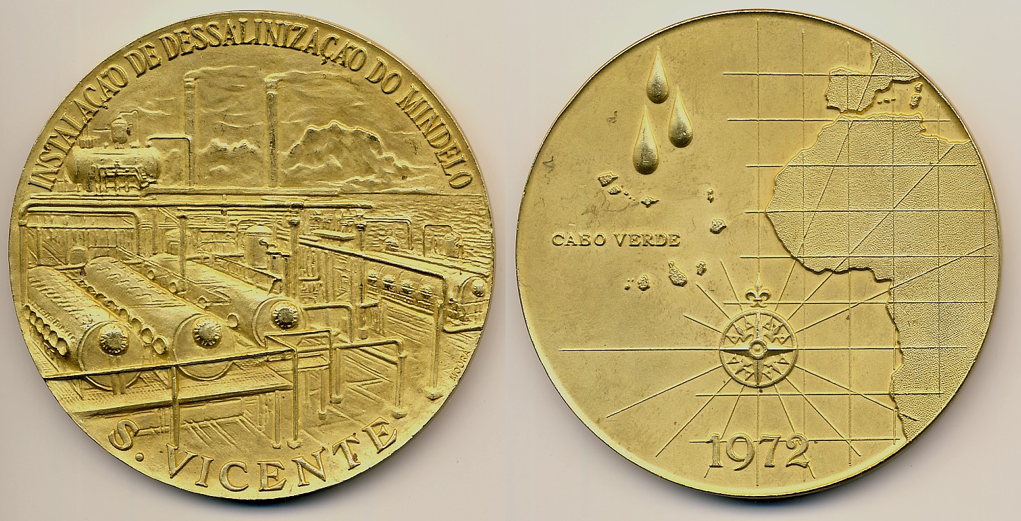 es wird mal wieder Zeit, das Afrika-Subforum zu beleben. Deshalb erlaube es mir heute Abend, eine afrikanische Medaille vorzustellen. Diesmal geht es in Richtung Kapverdische Inseln, genauer gesagt, auf São Vicente. Am dortigen Hauptort Mindelo - mit ca. 70.000 Einwohnern nach der Hauptstadt Praia die zweitgrößte Stadt des Inselstaates – wurde 1972 eine Meerwasser-Entsalzungsanlage eröffnet. Zu diesem Anlass gab es eine riesige Medaille aus Messing, die ich Euch an dieser Stelle vorstellen möchte.