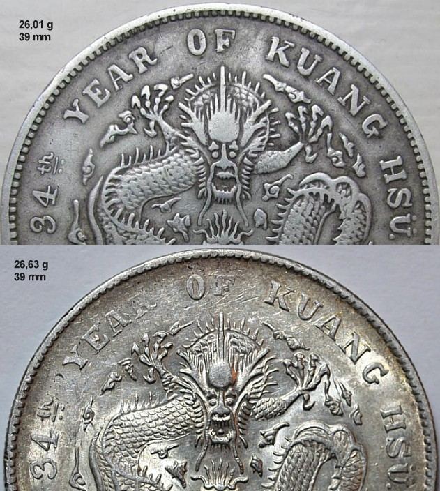 In der Pei Yang Arsenal Mint in Tientsin, Provinz Chihli, wurden solche kaiserliche Münzen aus Silber geschlagen. Dieser Dollar trägt das Datum des Regierungsjahres 34, was AD 1908 entspricht. Speziell dieser Jahrgang wurde allerdings später - in der Zeit der Republik - noch nachgeprägt.
