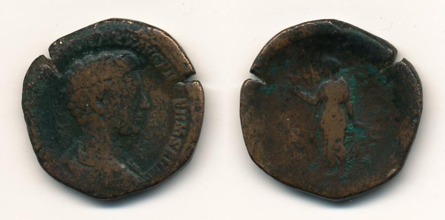 Schon ziemlich abgelutscht, doch irgendwie gefiel er mir trotzdem, ich wollte ihn einfach haben, was für etwa 13,50€ (mit Porto) möglich war. Wurde als "Marcus Aurelius Sesterz" angepriesen, trotz mieser Erhaltung lässt er sich exakt bestimmen. Wer ist der Unbekannte?