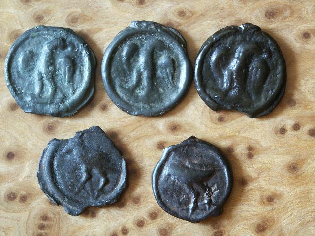 Natürlich gibt es auch Vogeldarstellungen auf Potinmünzen