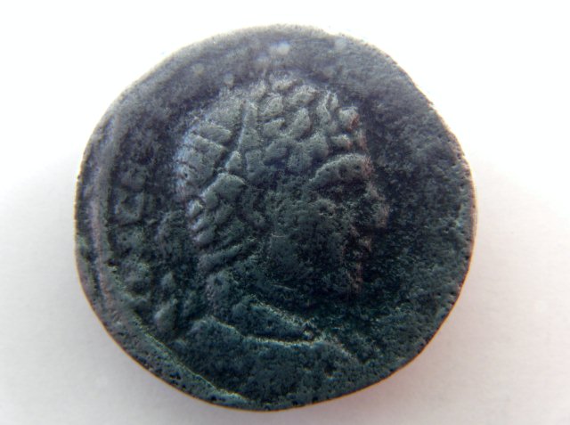 Das Portrait erinnert mich auch an Caracalla aus der römischen Provinz, allerdings habe ich so ein Revers noch nie gesehen. Es schaut mir auch manipuliert aus (AOI ist niemals antik) und daher erhebt sich die Frage, ob das Stück überhaupt echt ist, ich neige dazu, das zu verneinen.