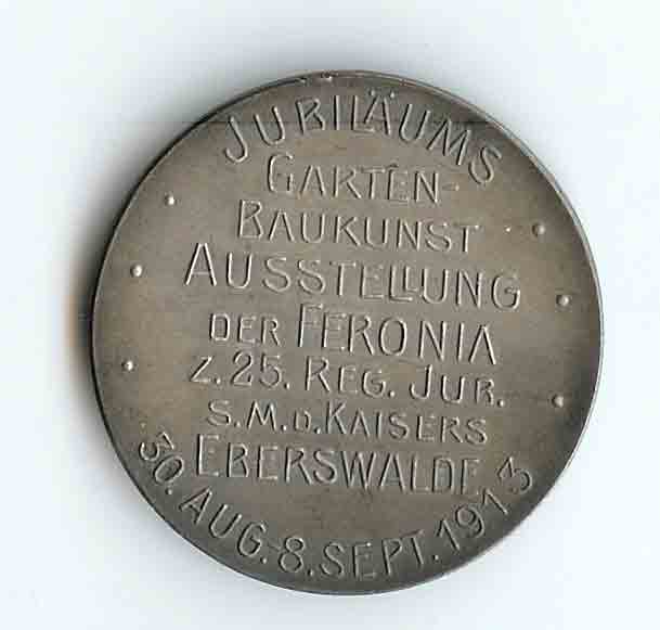 rs: Früchte- und Ehrenkranz, darin: DER KUNST UND DEM FLEISSE IM GARTENBAU; Umschrift: 25 JÄHRIGES JUBILÄUM DES PANKOW-SCHöNHAUSENER GARTENBAU-VEREINS * 1893 *