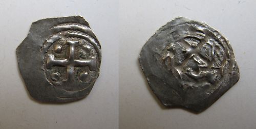 Auf der Münze ist jedoch ein Krückenkreuz abgebildet, das mW. erstmals im 20. Jahrhundert als Münzbild auftauchte. http://de.wikipedia.org/wiki/Kr%C3%BCckenkreuz