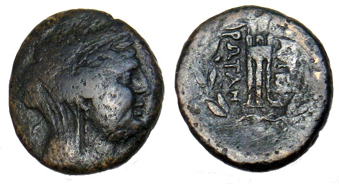 Rv.: AΠEI / PΩTAN; Lebes auf Dreifuß im Lorbeerkranz.
