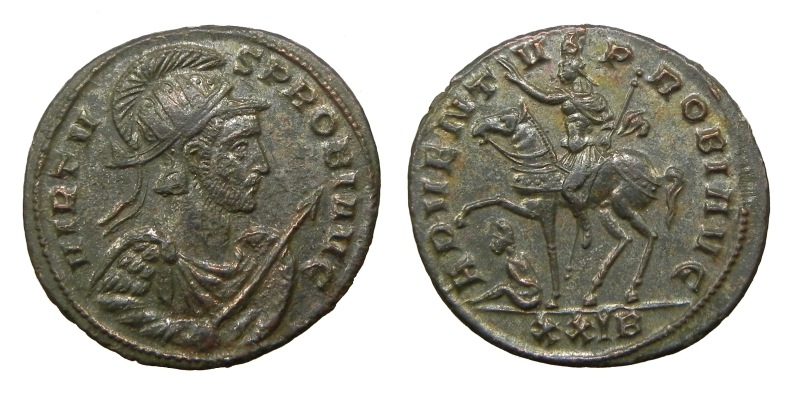 Ich hätte hier noch einen weiteren Probus, dieser ist daher interessant für mich, dass ich die Darstellung einer Medusa ( auch wenn sie nicht so gut ersichtlich ist ) noch nie auf solch einem Rundschild gesehen habe.