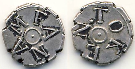 Die sind damals recht genau abgewogen worden. Meine Stücke wiegen (von oben nach unten) 0,55 g, 0,55 g, und 0,56 g. Das Sollgewicht war nach Codrington 8,75 grains, was - grob überschlagen ;) - 0,5569904625 g wären.