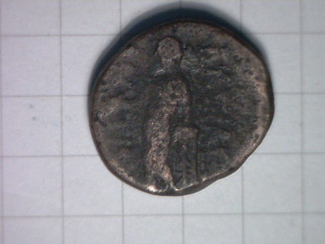 seit langer Zeit versuche ich verzweifelt, eine kleine Bronzemünze zu bestimmen. Der schlechte Erhaltungsgrad macht es nicht leichter. Auf der Vorderseite ist ein Kopf mit Schleier zu erkennen (Apollon?), auf der Rückseite ist ein Dreibein mit einer Figur (ebenfalls Apollon?). Seitlich steht etwas geschrieben, aber es kann Latein oder Griechisch sein. Gewicht 2,95g. Material Bronze.