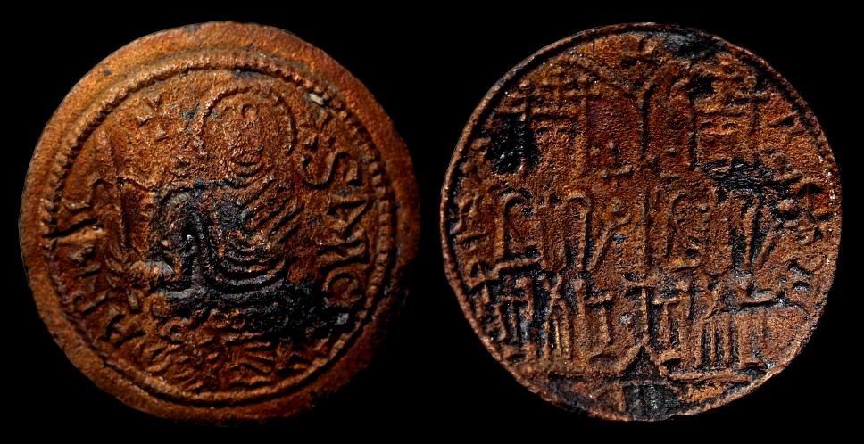 Nora Berend, At the gate of Christendom: Jews, Muslims and 'Pagans' in Medieval Hungary.Da hier auf die Prägungen der Normannen in Sizilien verwiesen wird, zeige ich unten zum Vergleich zwei solche Stücke, die auf die gleichen Vorbilder zurückgreifen, wie die ungarischen Imitationen - einen "byzantinischen" Follaro mit der Gottesmutter (