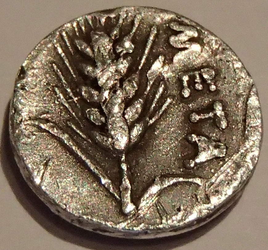 Ich habe bereits selbst herausgefunden, dass sie den Kopf von Zeus zeigt und auf der anderen Seite eine Meta Ähre.