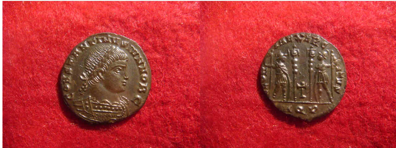 Constantin I. konnte ich mit einem Labarum nicht finden, die beiden anderen sind im RIC VII 383 (Constantius II mit R5, was allerdings nicht viel sagt) und ebenfalls im RIC VII 125, Constantin II., keine Seltenheitsangabe) verzeichnet.